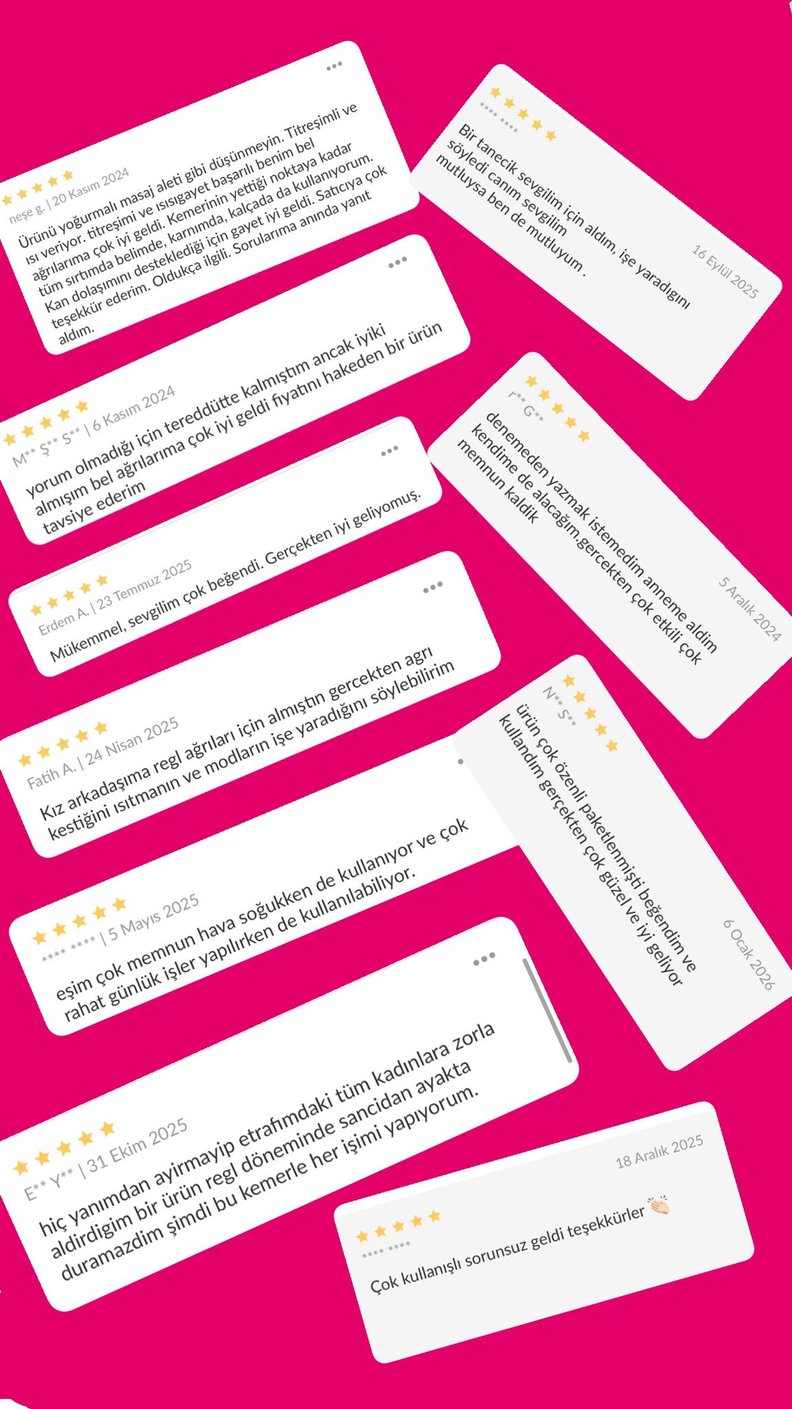 Şu ana kadar VioraSoft Regl Kemerini satın alan binlerce kişiden sadece birkaçını sizlerle paylaşıyoruz.